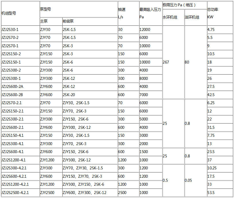 注:1.以上表格為行業(yè)推薦標(biāo)準(zhǔn)系列,因在實際生產(chǎn)應(yīng)用中工作條件的不同,吸入氣體壓力會發(fā)生很多變化,所以在選型時應(yīng)根據(jù)實際抽氣過程、氣體釋放過程、可疑氣體冷凝情況、吸入壓力的變化時間等進(jìn)行校核計算或參照現(xiàn)有設(shè)備使用情況選型。